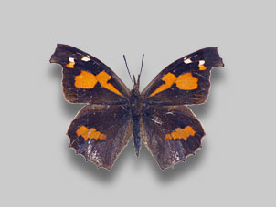 | 現在テングチョウはタテハチョウ科に分類されているが、ここでは旧分類のままテングチョウ科とさせていただく。 テングチョウ科にはテングチョウ一属一種しか存在せず。日本産はでは本土産と奄美大島以南産の亜種に区分されているが、奄美大島以南産の方が大型であり、翅表斑紋も大きい。北海道の5拠点で確認されており、これを別 亜種とする説もあるが、未だに生息しているのかどうかが疑問である。また、八重山諸島では赤橙斑の小さく、色調の暗い台湾産亜種に似た種も採集されている。 雌雄の区別は、 一般に♀の赤橙色斑紋は♂より大きい。 |