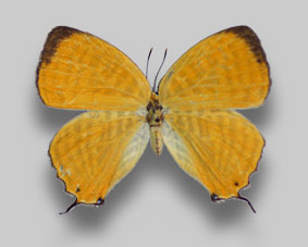 ♂の翅表には黒色部がないが、♀の前翅頂に三角形状の黒斑があることで区別 できる。 |