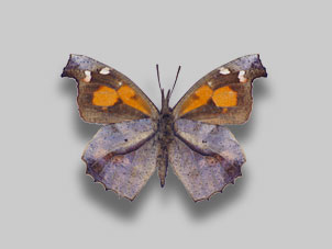 | 現在テングチョウはタテハチョウ科に分類されているが、ここでは旧分類のままテングチョウ科とさせていただく。 テングチョウ科にはテングチョウ一属一種しか存在せず。日本産はでは本土産と奄美大島以南産の亜種に区分されているが、奄美大島以南産の方が大型であり、翅表斑紋も大きい。北海道の5拠点で確認されており、これを別 亜種とする説もあるが、未だに生息しているのかどうかが疑問である。また、八重山諸島では赤橙斑の小さく、色調の暗い台湾産亜種に似た種も採集されている。 雌雄の区別は、 一般に♀の赤橙色斑紋は♂より大きい。 |